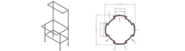 说明 薄壁线棒应用于轻型产品的主体结构,或作为辅框架(注:此线棒内直接头仅适用DYJ28- B01B)。 |