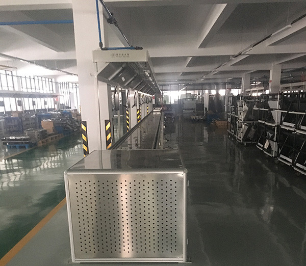1、流水线线采用平面环型布置,运行方式为柔性积放式。在调整工艺方艺方面可随时增减工位,达到装配目的。